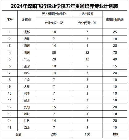 重磅!绵阳飞行职业学院2024年五年一贯制招生计划发布