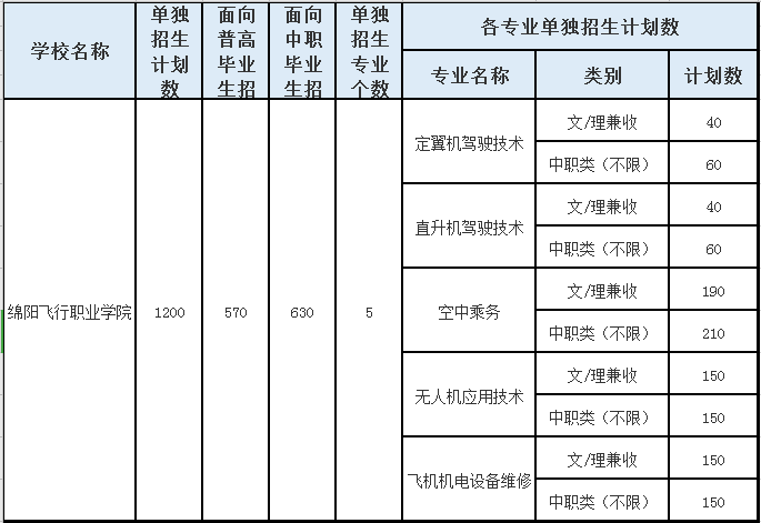 权威发布:绵阳飞行职业学院2021年单独招生简章