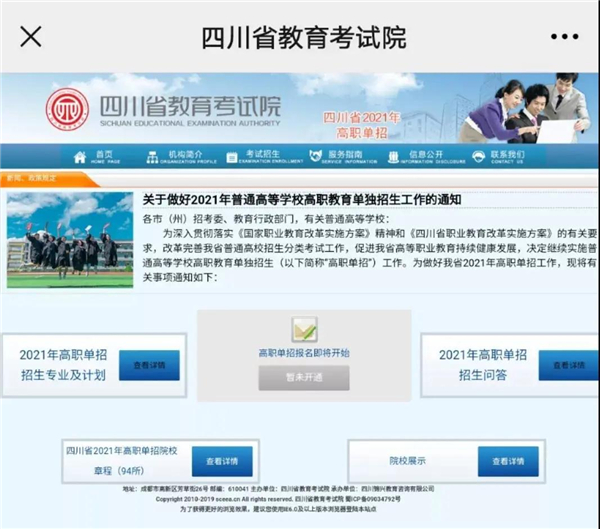 ???符合报名条件的考生于2021年3月4日8:00至3月14日18:00,登录四川省教育考试院网站(www.sceea.cn)中“2021年高职单招网上报名系统”,填报高职单招学院志愿(学院志愿设置为1个),并按要求如实、准确提交考生报名信息。?
