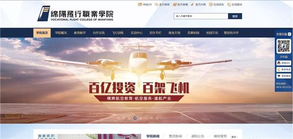 ????绵阳飞行职业学院是经四川省人民政府批准成立,国家教育部备案,纳入国家招生计划的以民航飞行人才培养为主的全日制高职院校。学院耗资五亿元打造先进完善的航空实训体系,致力发展成为一所以培养飞行为主,集航空制造、维修、服务和技术研发为一体的高素质技术技能人才的国内一流高职院校,成为具有广泛影响力和自身办学特色的民航类高端技术人才培养基地。