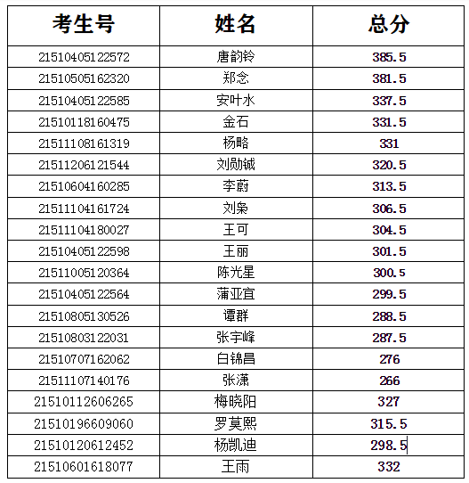 ????按省教育厅考试院统一部署,现对参加我院2021年单招考试成绩合格,拟录取的考生进行公示。拟录取名单公示期间,如有考生申请放弃录取(放弃录取考生请在公示期内联系招生处联系电话:0816-4719999),可替补录取。