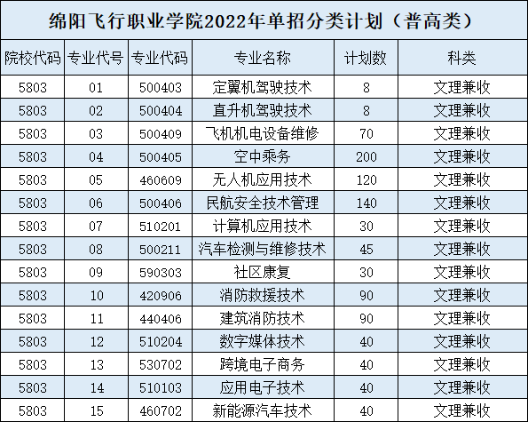 2022绵阳飞行职业学院单招计划已出炉,权威报考指南速速查收