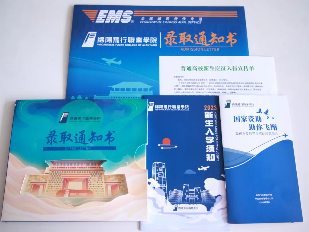 ????绵阳飞行职业学院录取通知书由蓝天祥云封套和录取通知书内页组成,具有绵阳飞行职业学院独有的特色,在结构设计上,采用了模切镂空的工艺,给人强烈的视觉冲击。