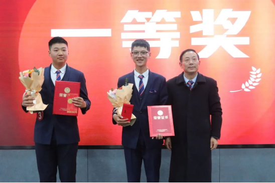 ? 副院长李选华为一等奖获得者刘缘梦、李道成颁奖