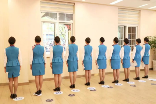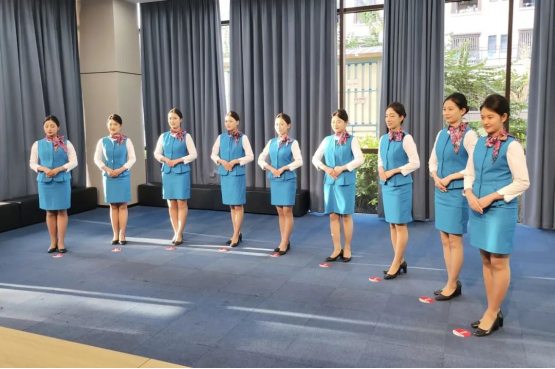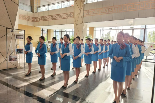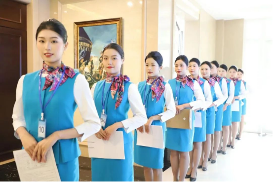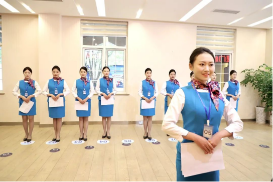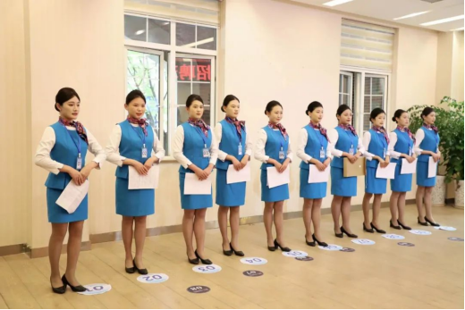 面试当日,绵飞学子们严格遵守面试要求,注重面试礼仪,一身标准职业装,排列整齐。仪态挺拔、笑容自信,展现了“高度职业化的民航员工”风采。