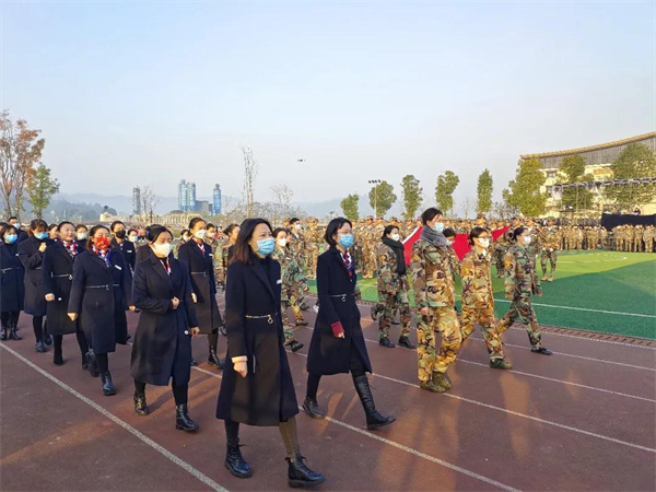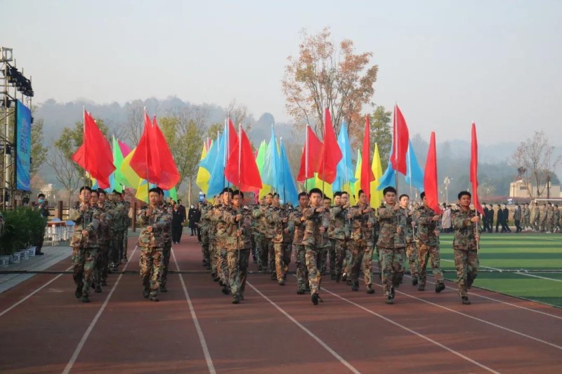 ????以满腔热血,绽放个性青春。随着列队进行曲的伴奏声,各个学员中队代表队也陆续进入赛场。