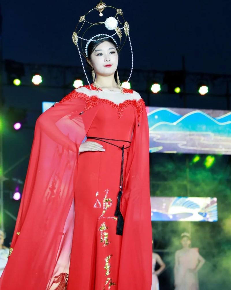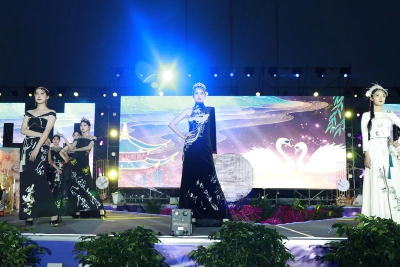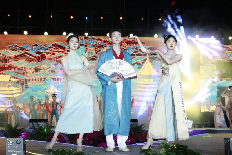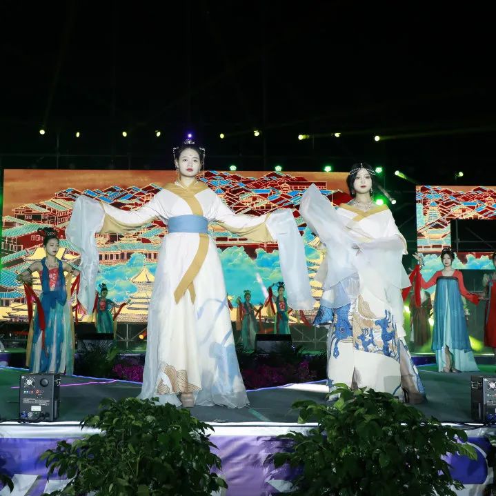 ????华美之服在灯光下耀眼夺目,流裙上飞舞的形象也在熠熠生辉。舞台融合了视觉、听觉效果,让传统与现代,碰撞出新生活力,给观众带来一场视觉盛宴,让身穿唐服霓裳的才子佳人,在现代盛世再现文明的优美画卷!
