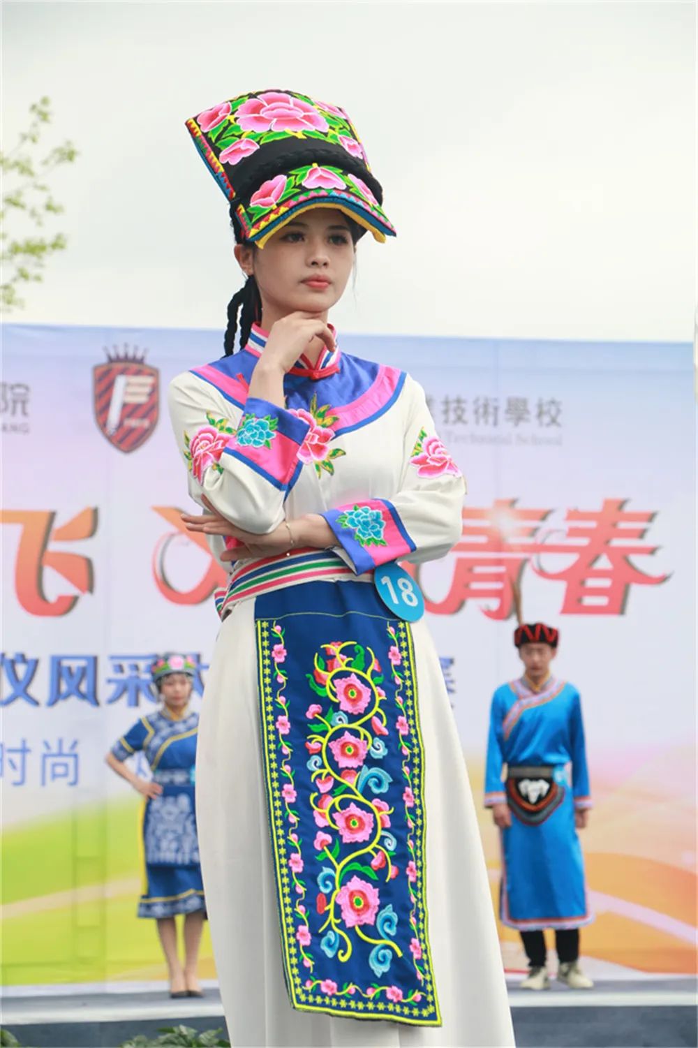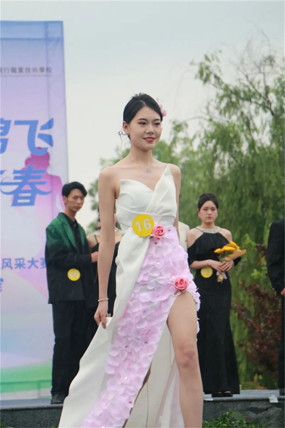 ???4月20日下午,春雨如织,2023绵飞礼仪风采大赛精彩继续。绵飞院24个班集体逐一登上T台,尽展绵飞学子青春芳华。标准优雅的礼仪风采展示、别具一格的服装创意走秀、师生同台的才艺助兴,将比赛现场气氛一次次点燃。