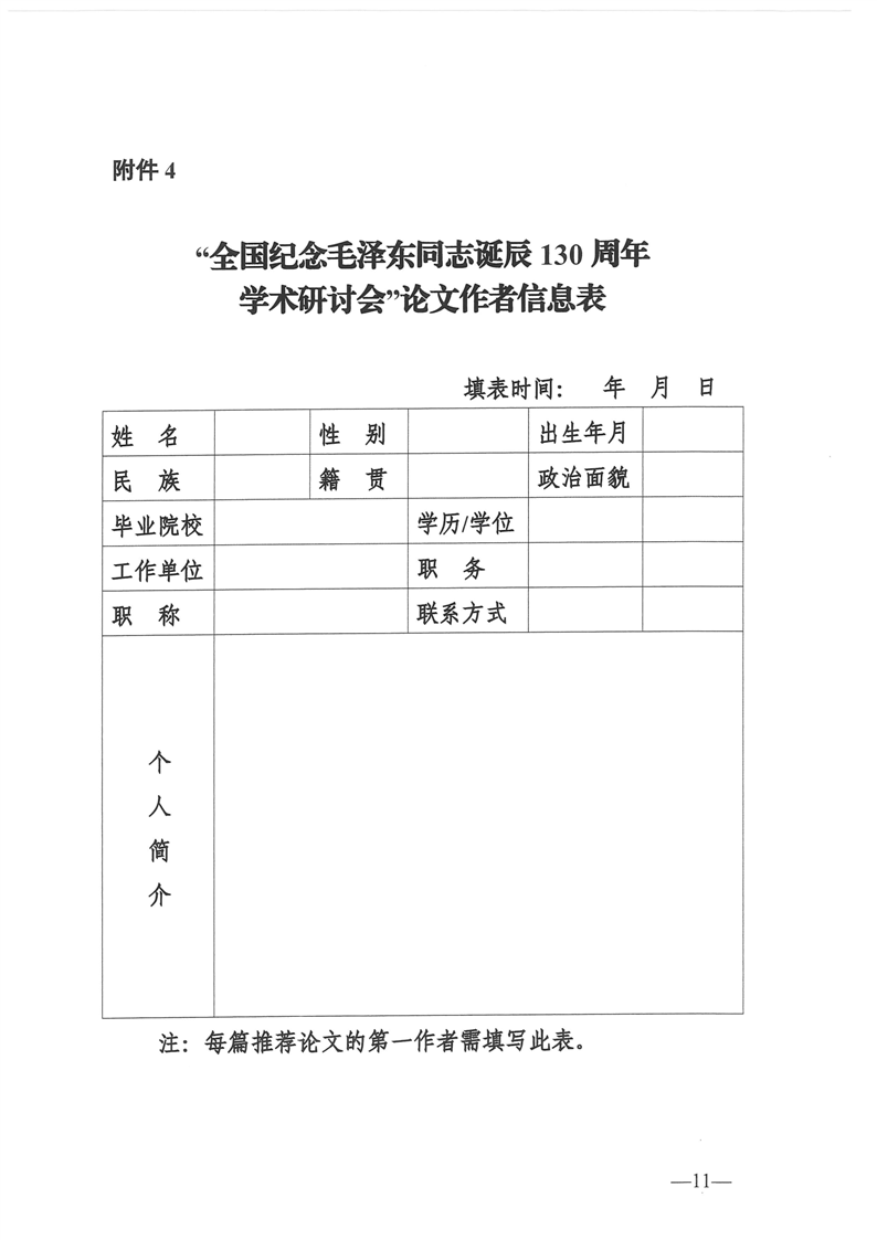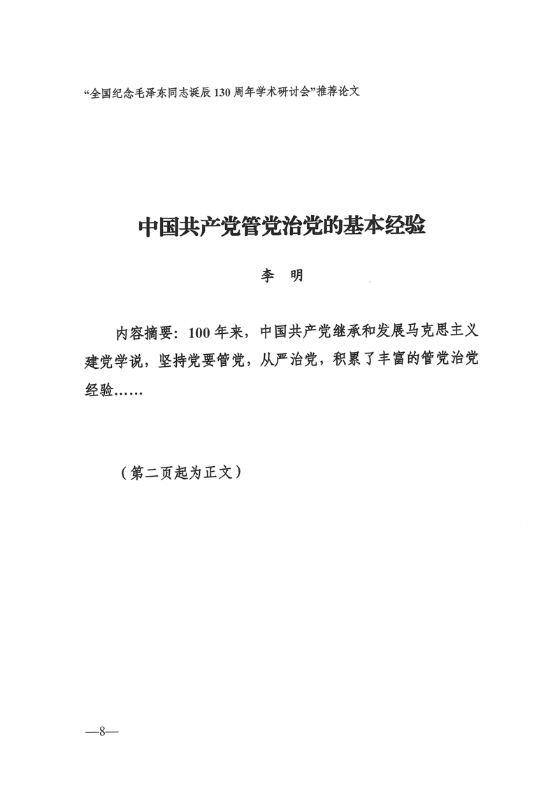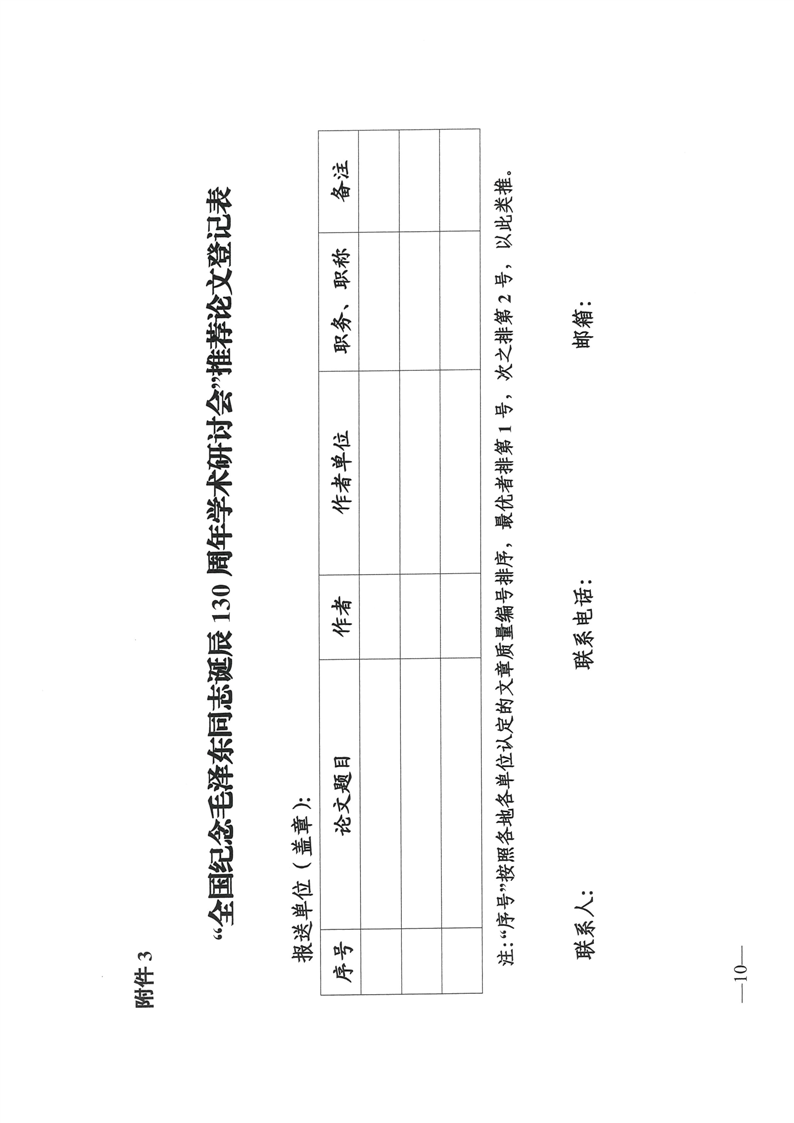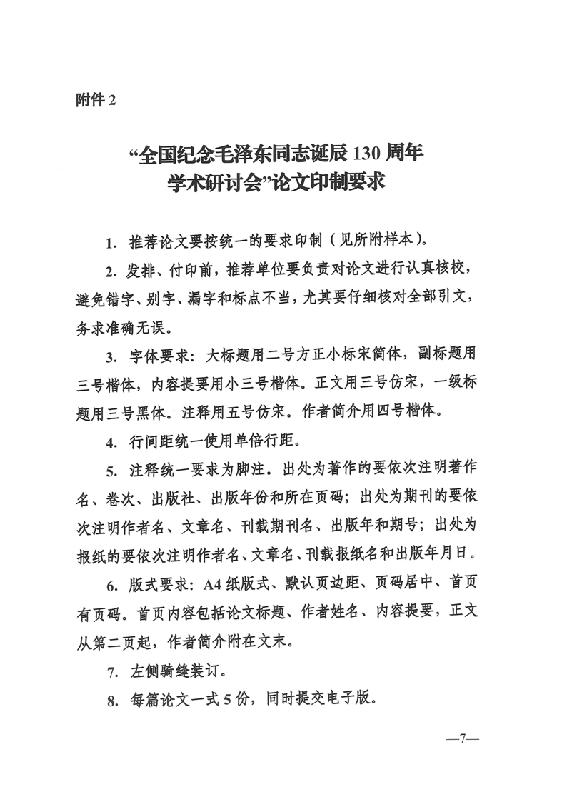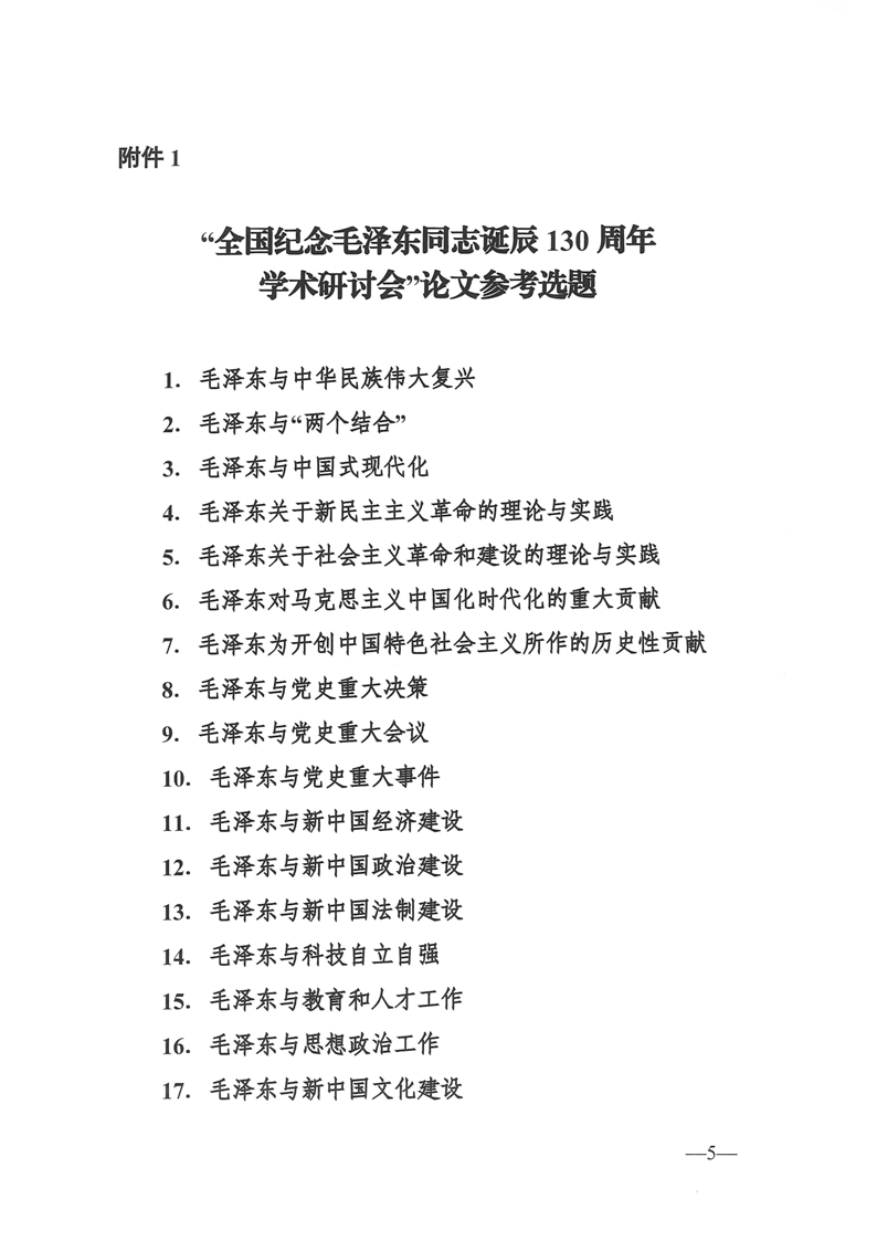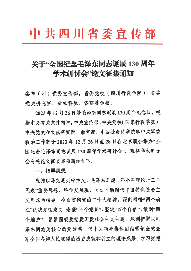 关于“全国纪念毛泽东同志诞辰130周年学术研讨会”论文征集通知