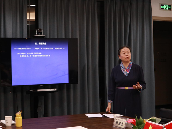 ????解继蓉副教授对《职业教育服务技能型社会建设研究——航空主题职业教育助力劳动教育的课程体系研究》进行开题论证。