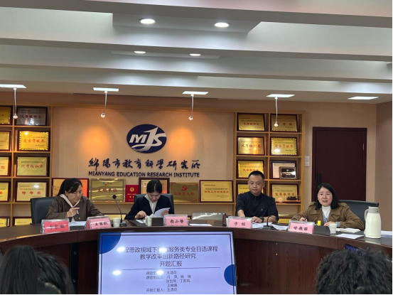 2024年11月14日,网教处带队绵阳市级课题—《课程思政视域下民航服务类专业日语课程教学改革创新路径研究》课题组在绵阳市教育科学研究院顺利完成开题论证。课题组成员王清花、冯萍、张剑琴、王佩佩、丁若岚参会
