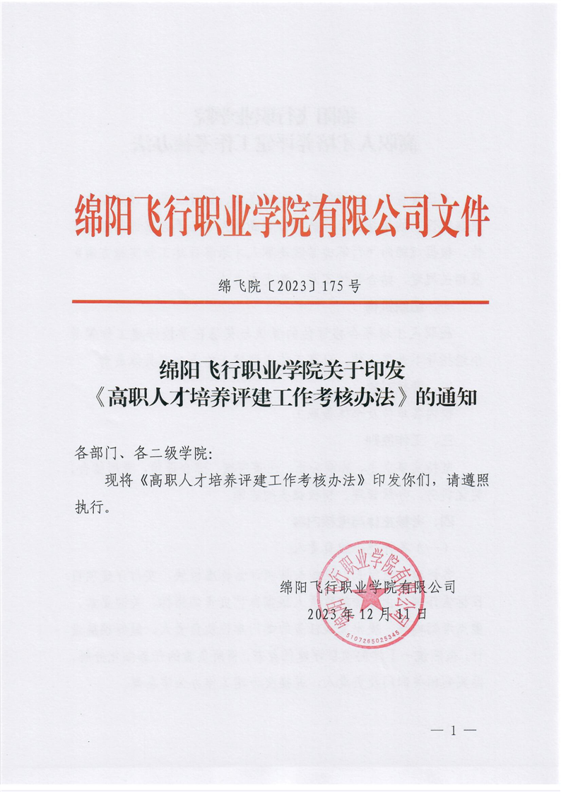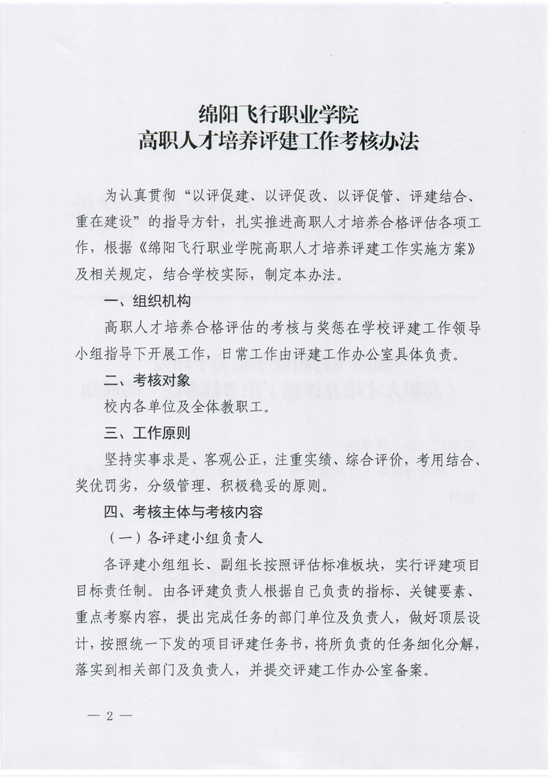 绵阳飞行职业学院《关于印发高职人才培养评建工作考核办法》的通知