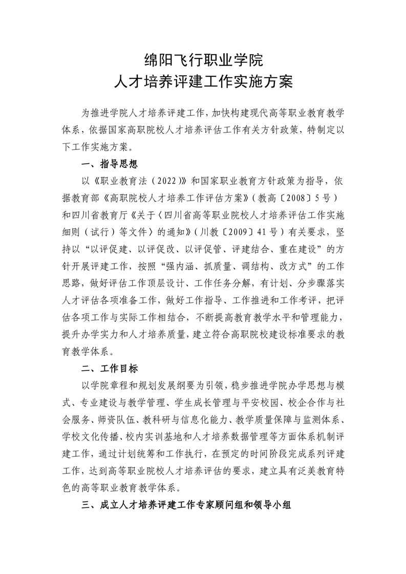 绵阳飞行职业学院文化建设及品牌宣传评建工作实施方案