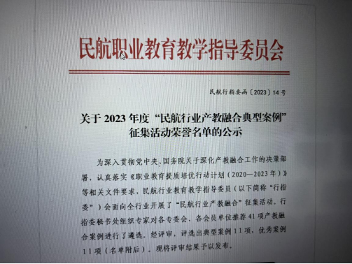 另一方面,飞工学院在响应集团对于中国航空运输协会产教融合案例征集中,也展现出了积极的态度和专业的实力。石孟雨院长助理执笔撰写的“直升机驾驶技术专业产教融合实训基地建设案例”在众多案例中脱颖而出,荣获2023年度“民航行业产教融合典型案例”。这是对飞工学院在产教融合方面的突出贡献的认可,也是对飞工学院教育教学质量的肯定。