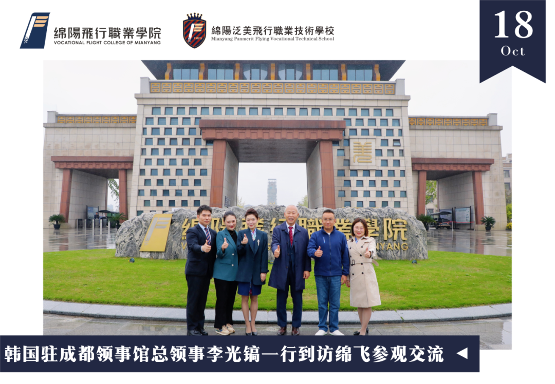 ????联手海外名校,搭建留学合作蓝桥。10月18日,韩国驻成都领事馆总领事李光镐一行应邀到我院访问交流,由泛美教育集团国际事务中心总经理王圆圆、 绵阳飞行职业学院副院长梁国辉等领导陪同参观。