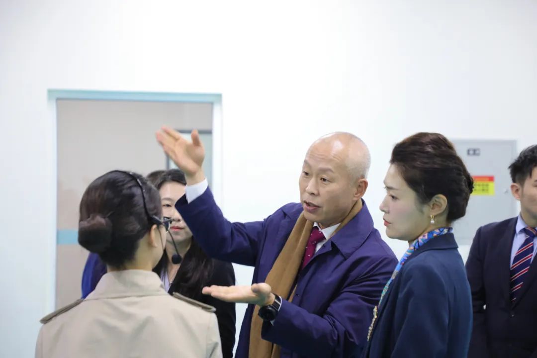 ????抵达绵飞校园后,李光镐总领事一行参观了绵阳飞行职业学院从极具羌藏民族文化特色的经典校园到一流实训中心,校园里一步一景令到访嘉宾们称赞不已。过程中, 绵阳飞行职业学院副院长梁国辉详细介绍了产教融合赋能教育、国际人才培养体系等基本情况。
