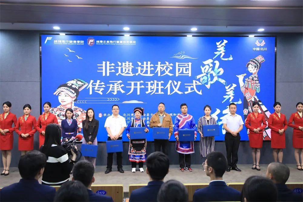 ????北川羌族自治县文化广播电视和旅游局副局长苟勇、北川羌族自治县文化馆馆长徐正斌、北川羌族自治县民族艺术团团长杨华武、绵阳飞行职业学院副院长梁国辉、绵阳泛美飞行职业技术学校副校长单招霞等出席了开班仪式。