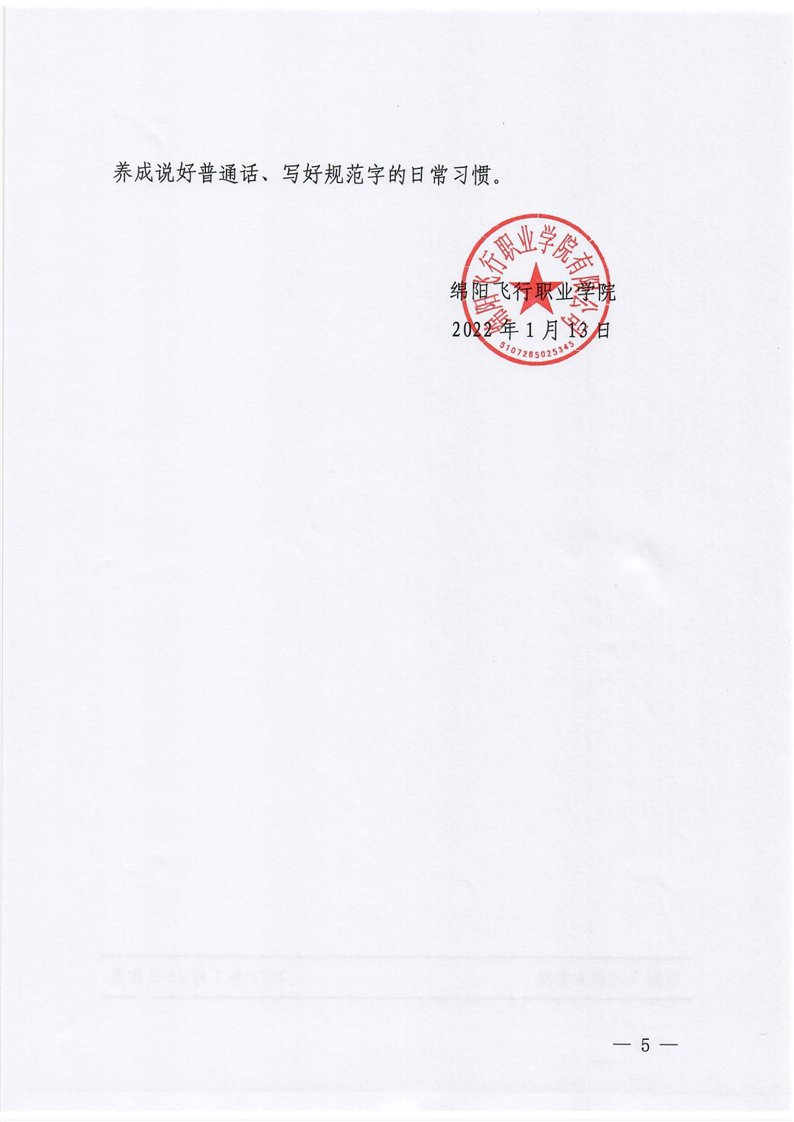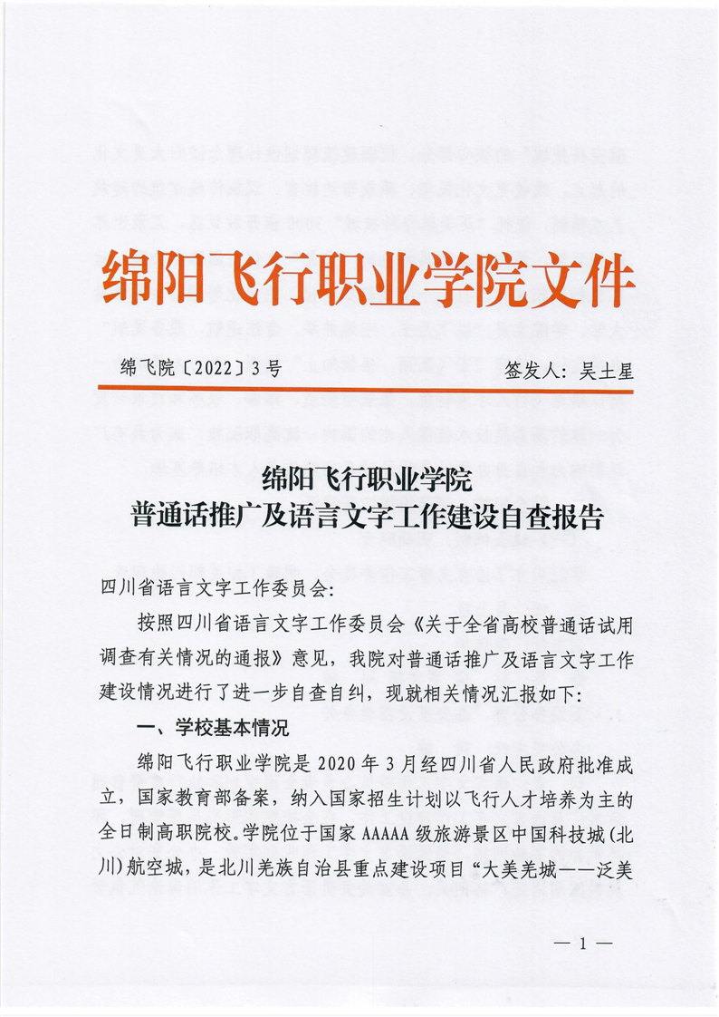 绵阳飞行职业学院普通话推广及语言文字工作建设自查报告