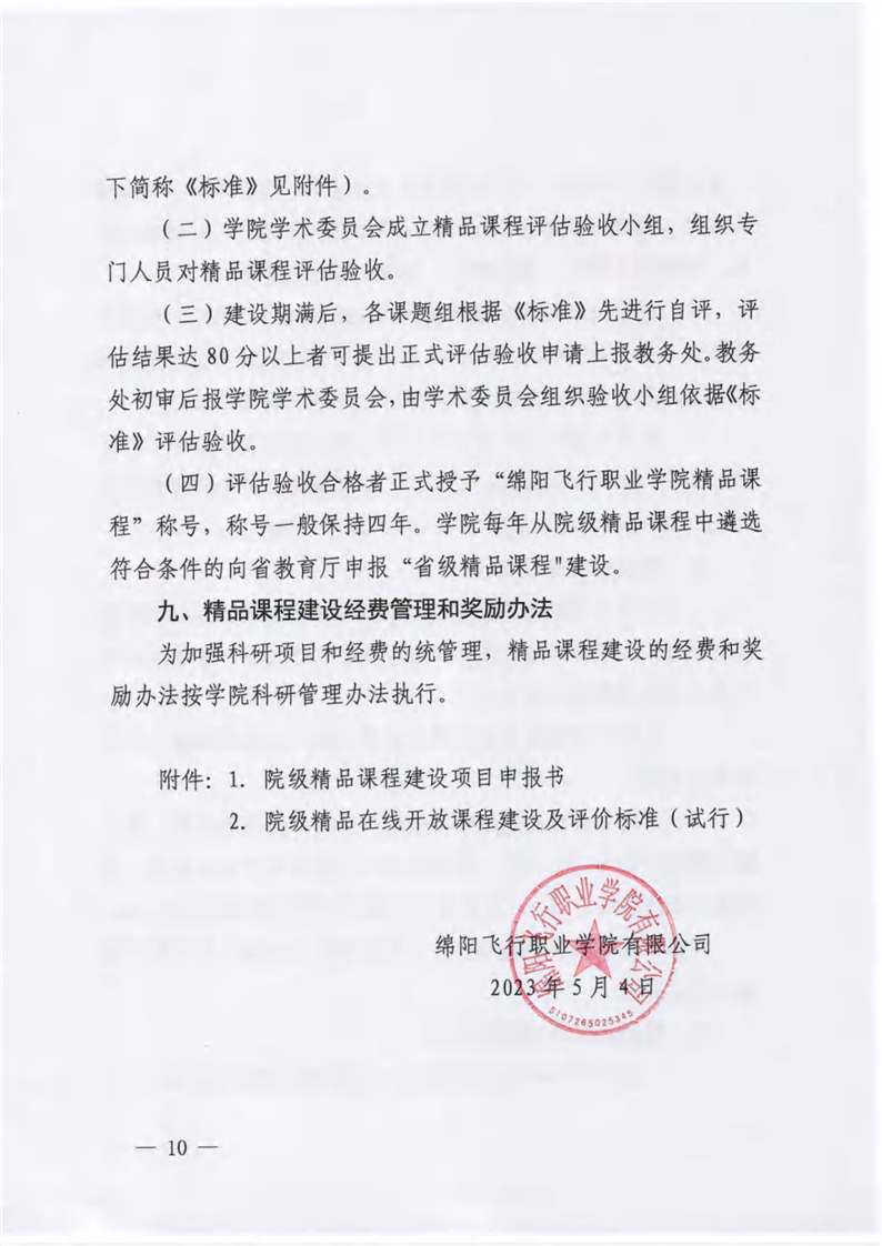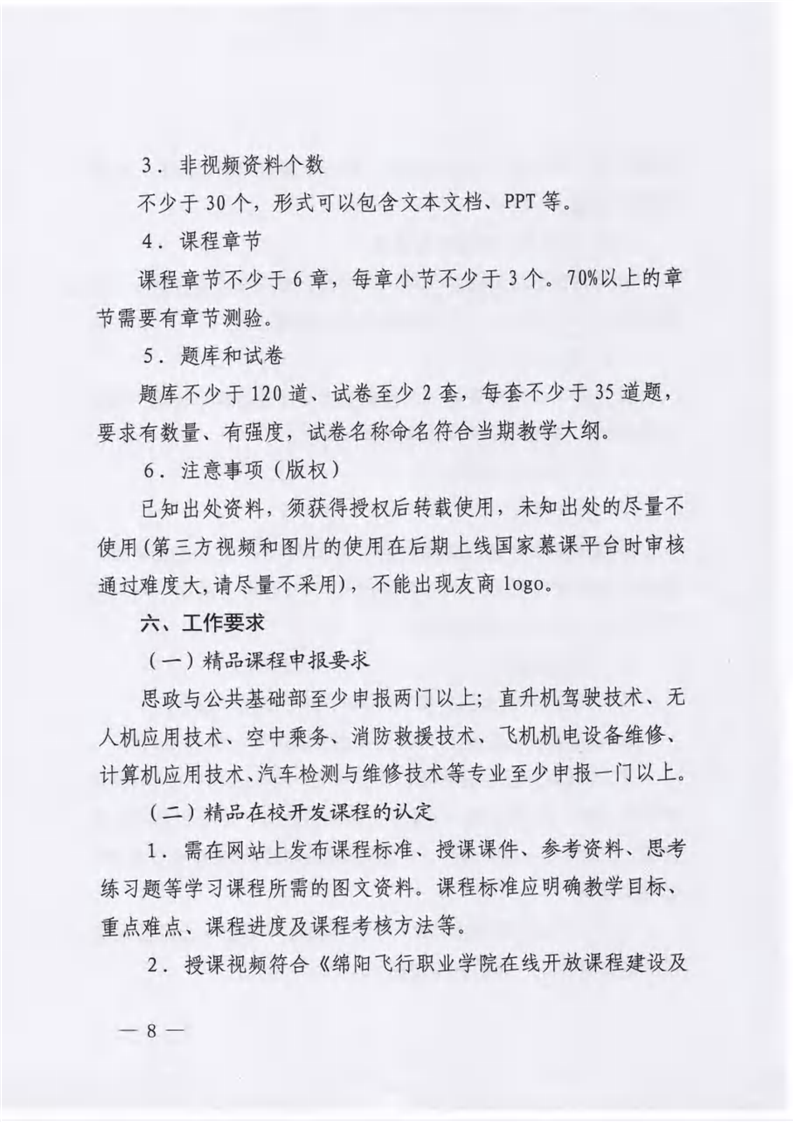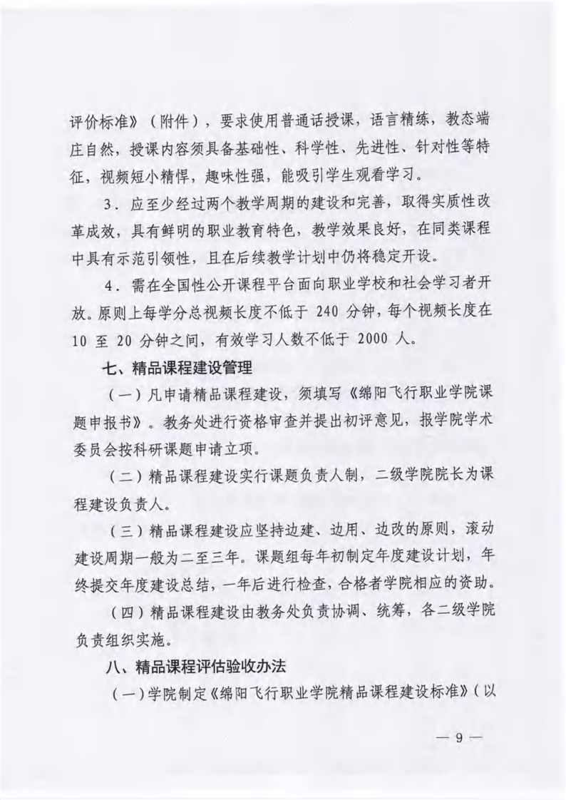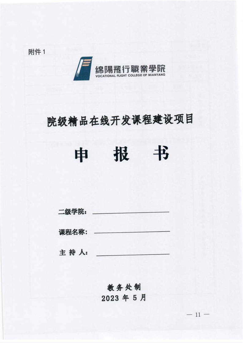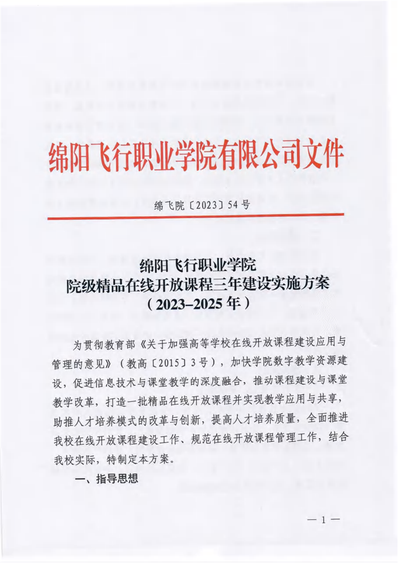 绵阳飞行职业学院院级精品在线开放课程三年建设实施方案(2023-2025年)