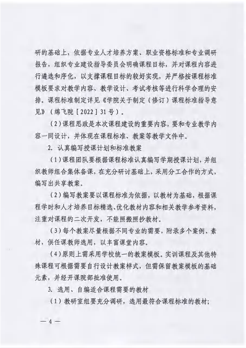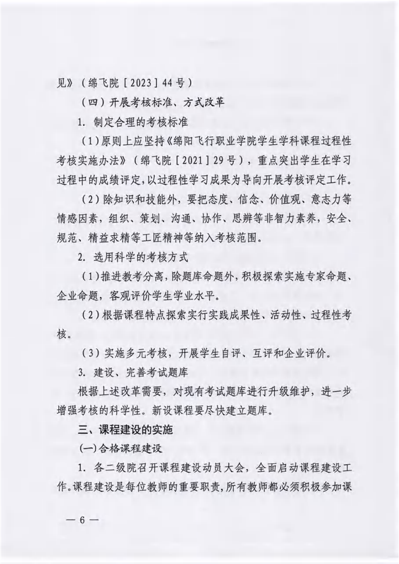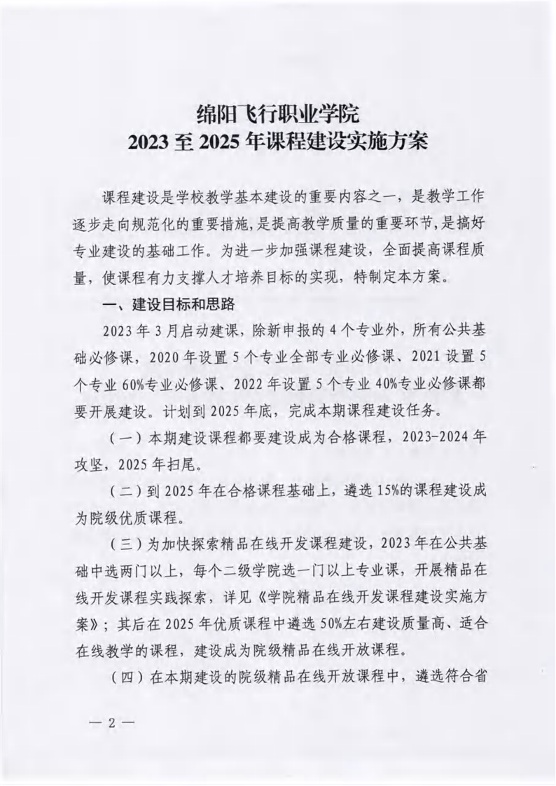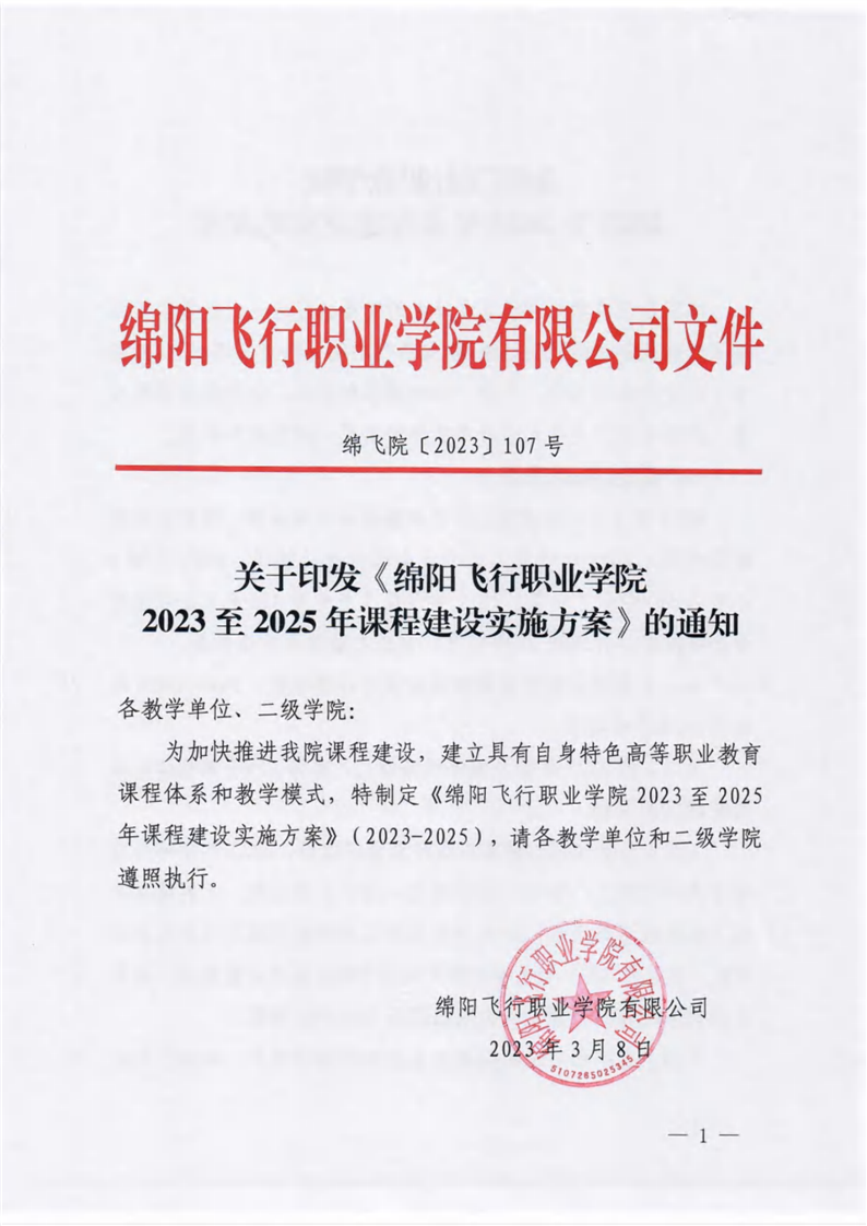关于印发《绵阳飞行职业学院2023至2025年课程建设实施方案》的通知