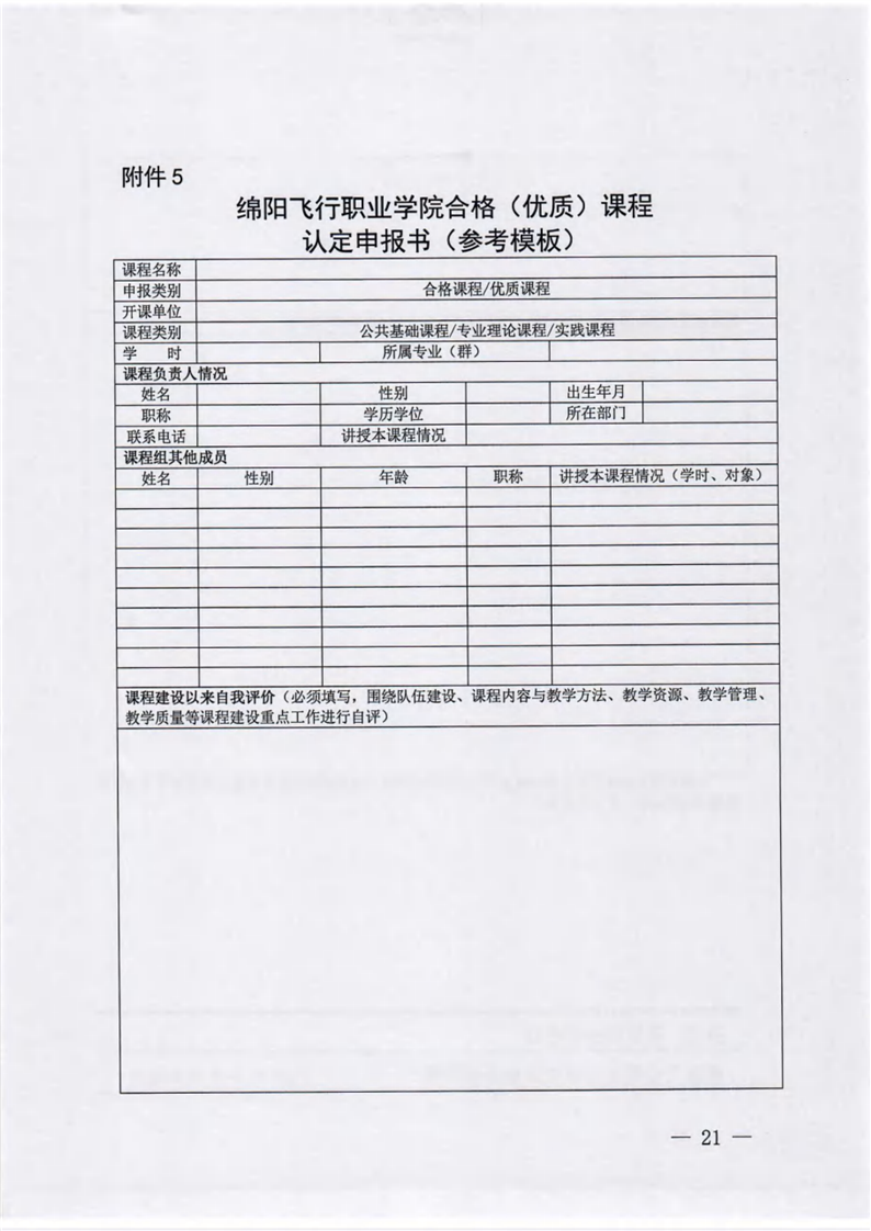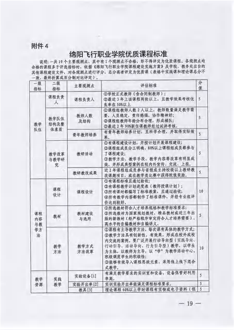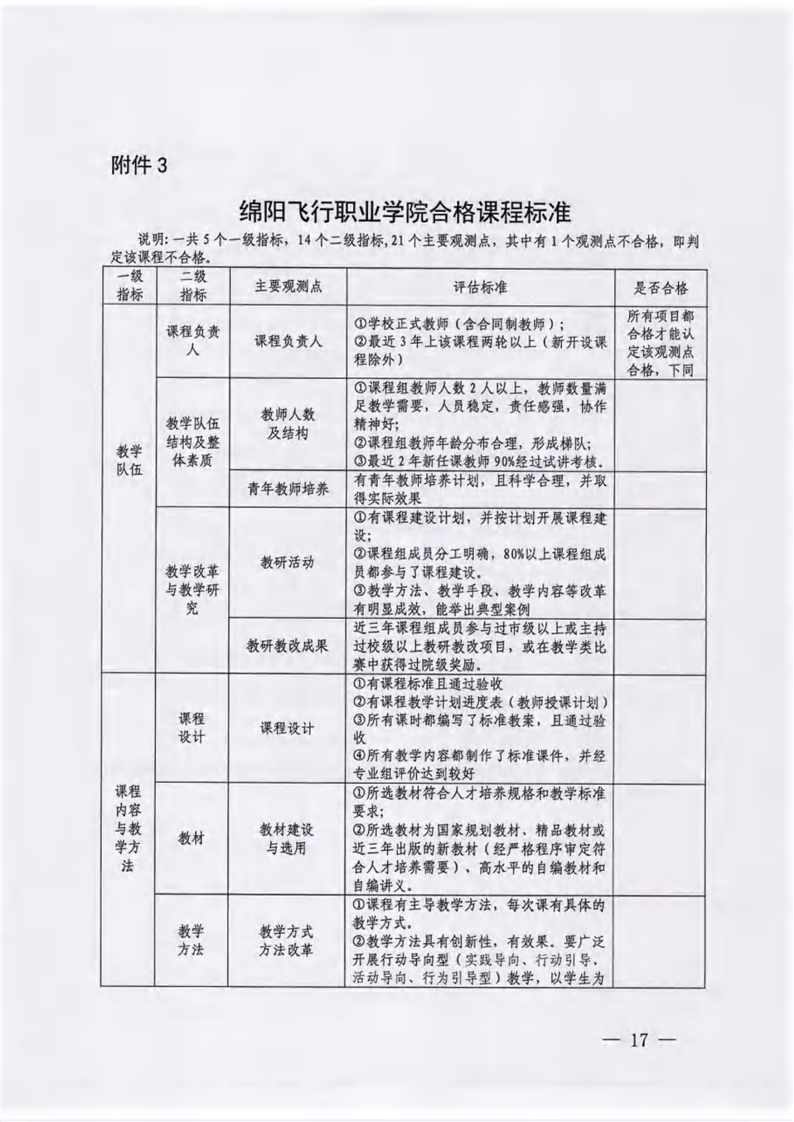 绵阳飞行职业学院关于印发《三年课程建设实施方案》的通知