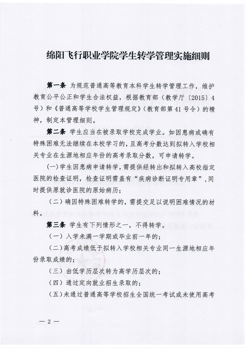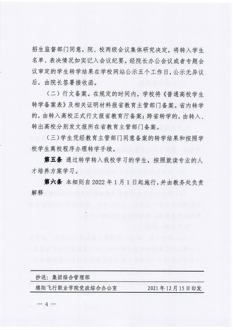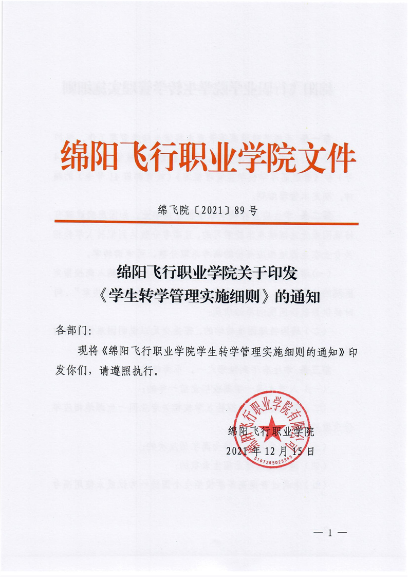 绵阳飞行职业学院关于印发《学生转学管理实施细则》的通知