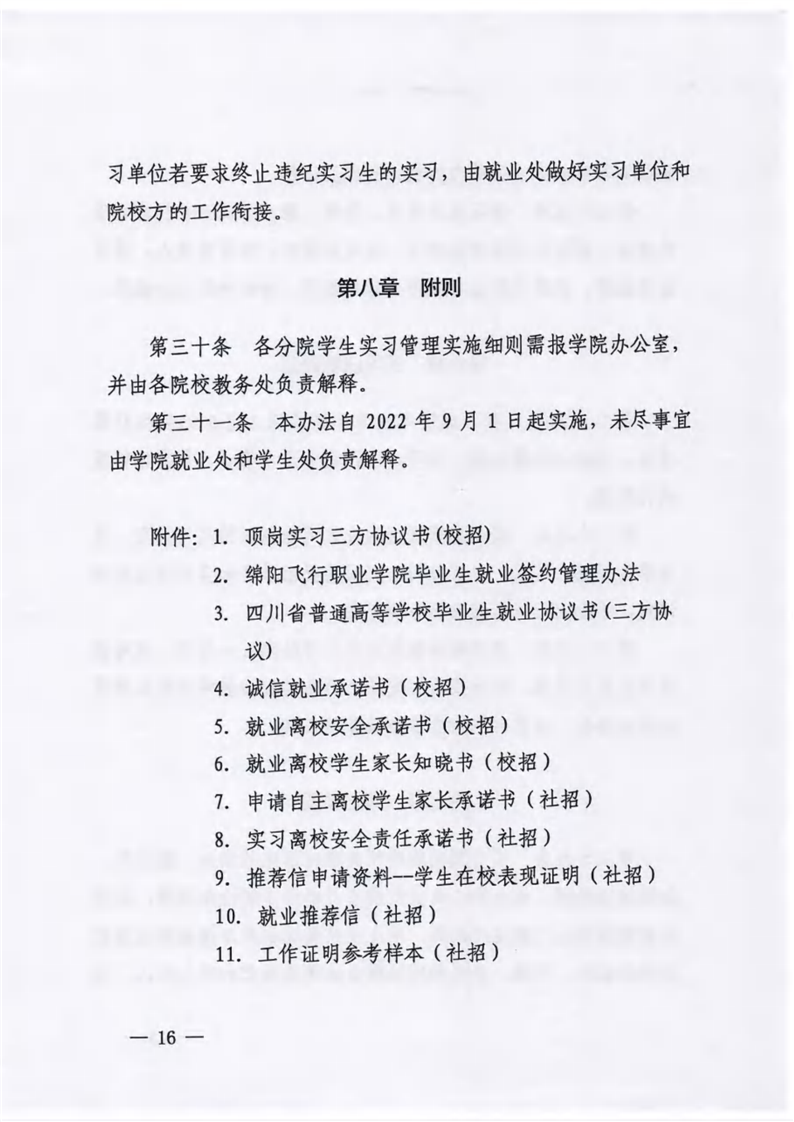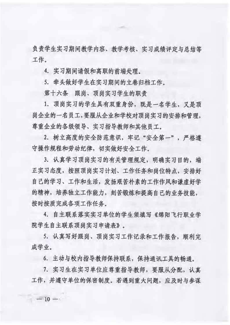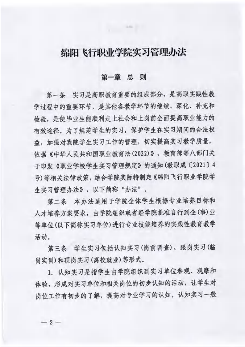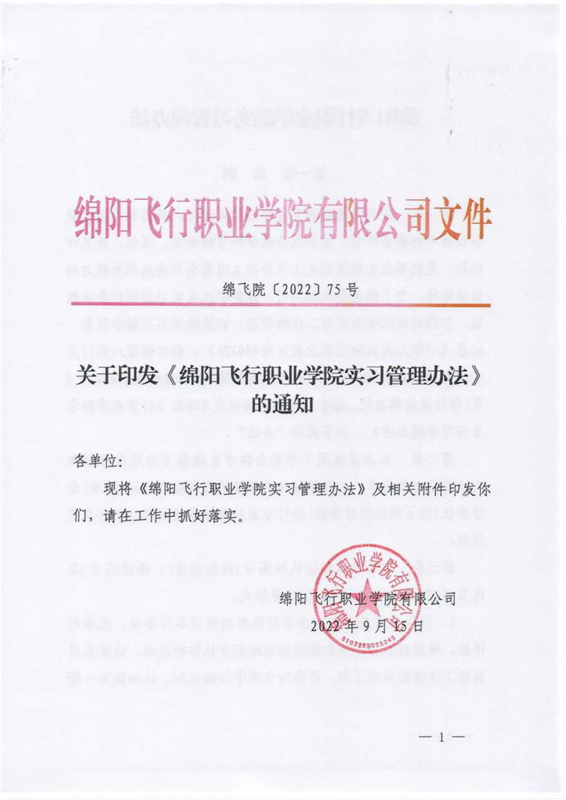 关于印发《绵阳飞行职业学院实习管理办法》的通知