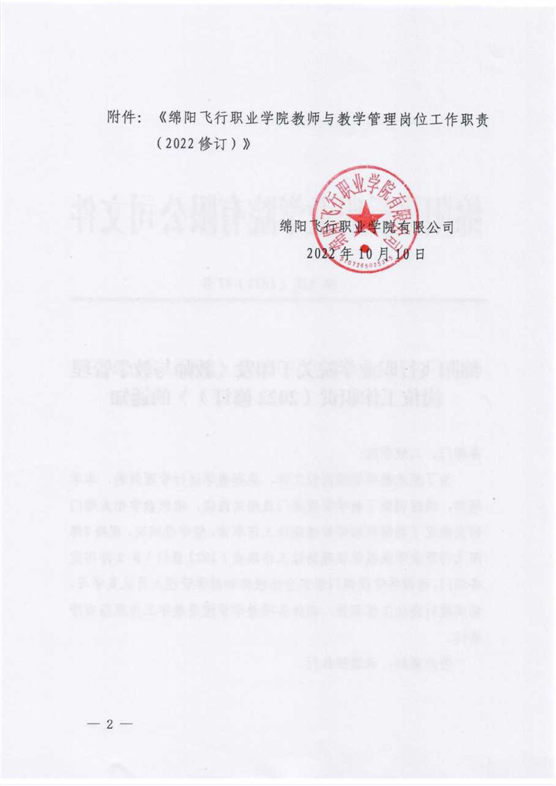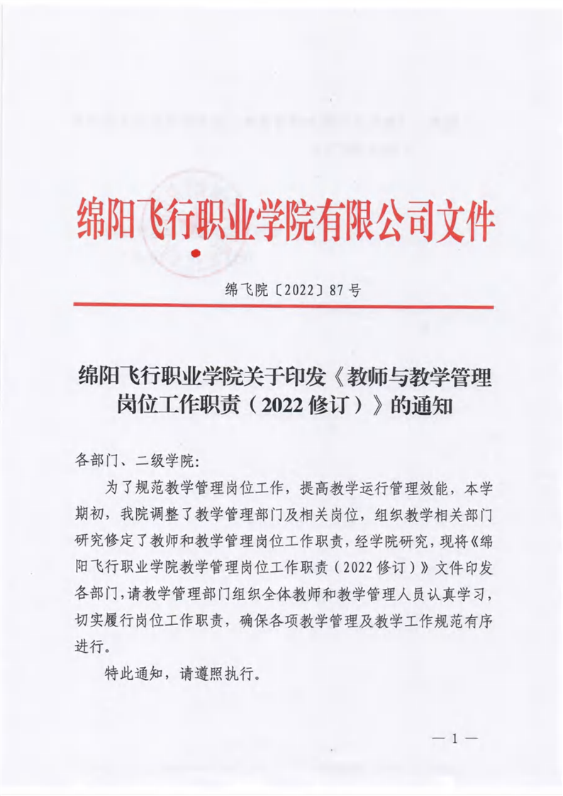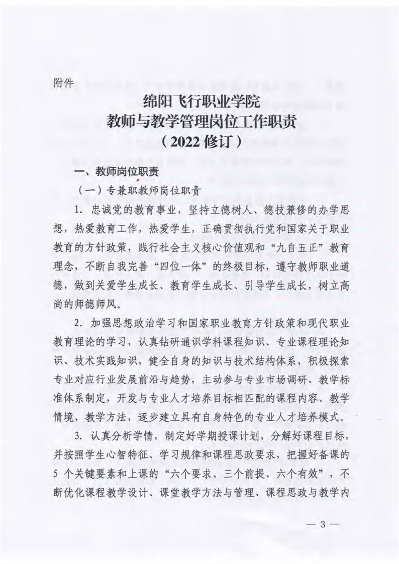 绵阳飞行职业学院关于印发《教师与教学管理岗位工作职责(2022修订)》的通知