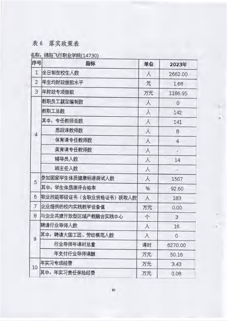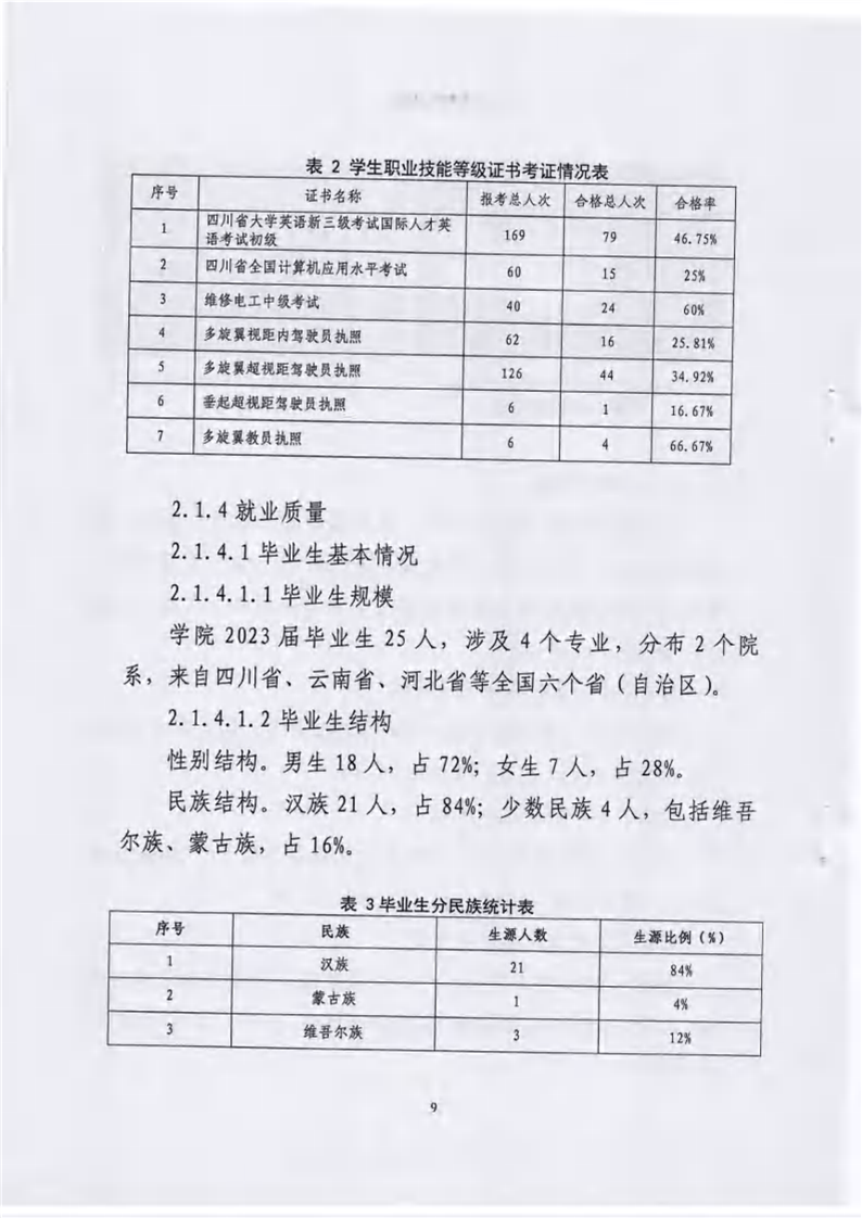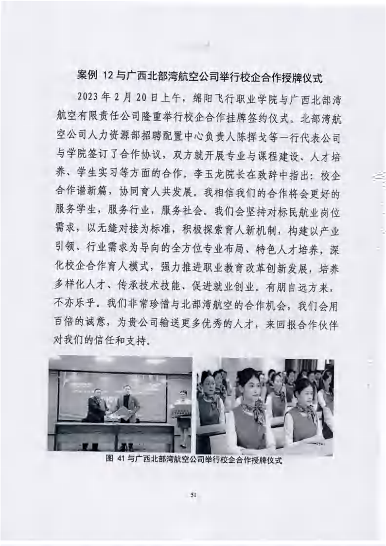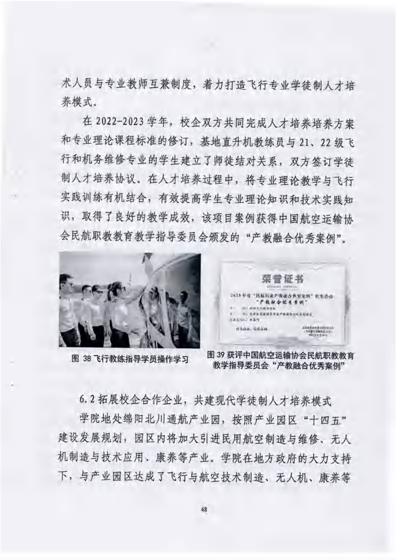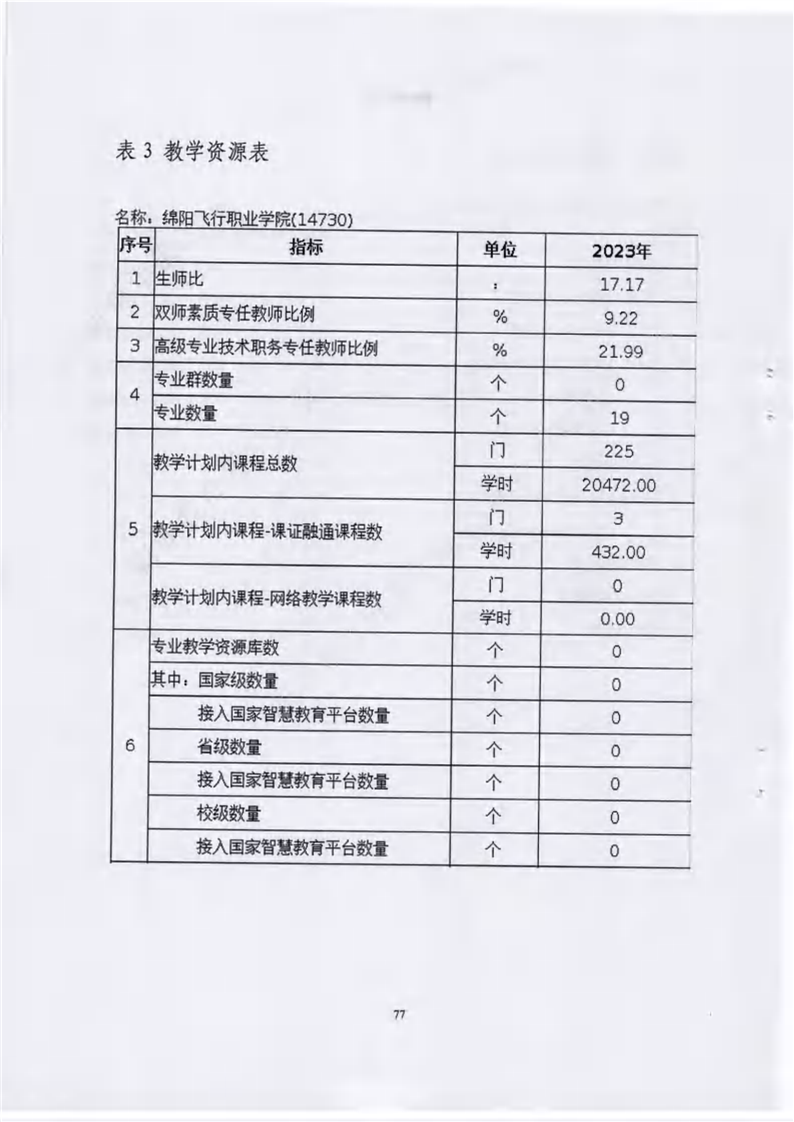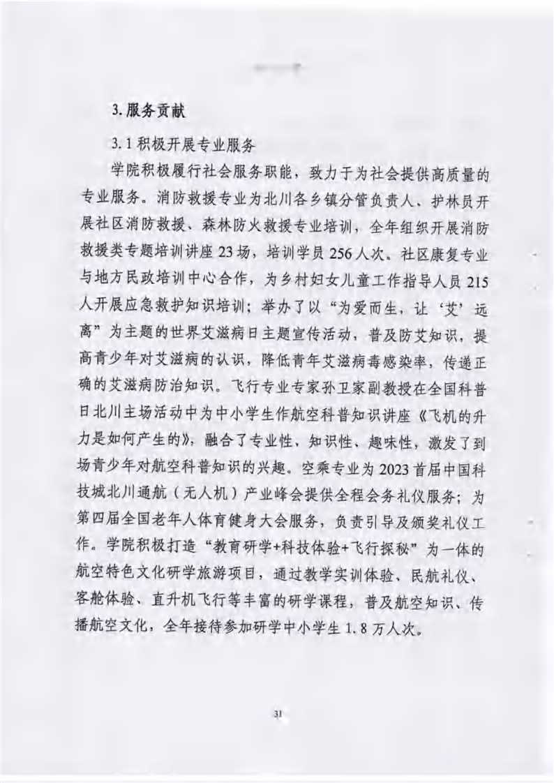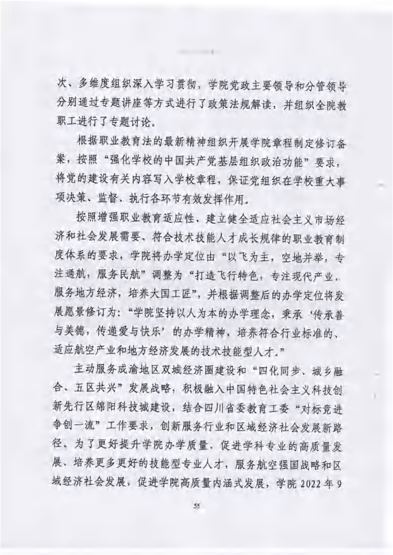 绵阳飞行职业学院有限公司关于报送《绵阳飞行职业学院高等职业教育质量报告(2023年度)》的报告