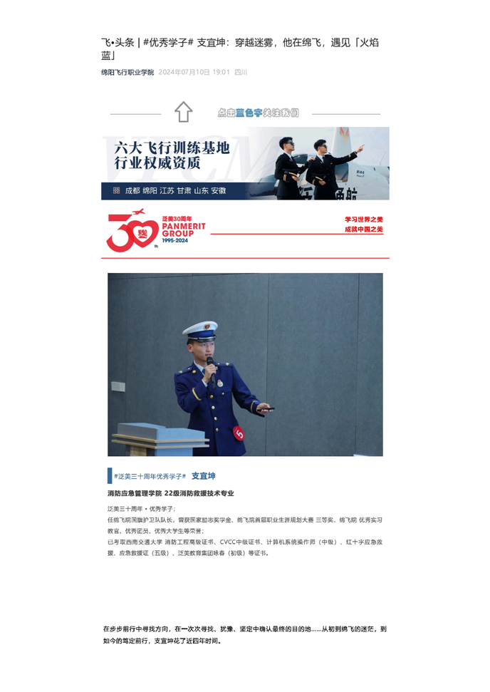 #优秀学子# 支宜坤:穿越迷雾,他在绵飞,遇见「火焰蓝」