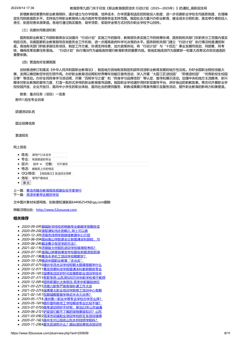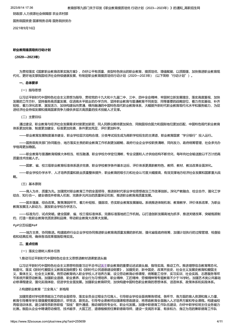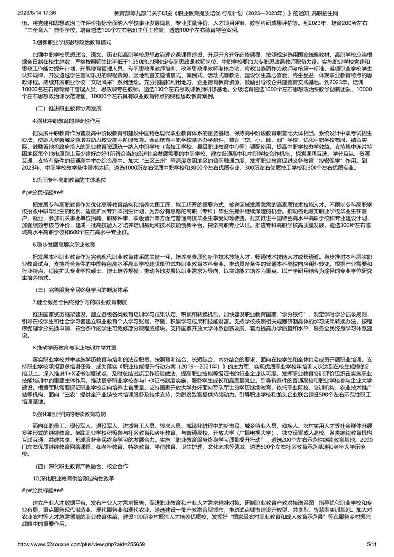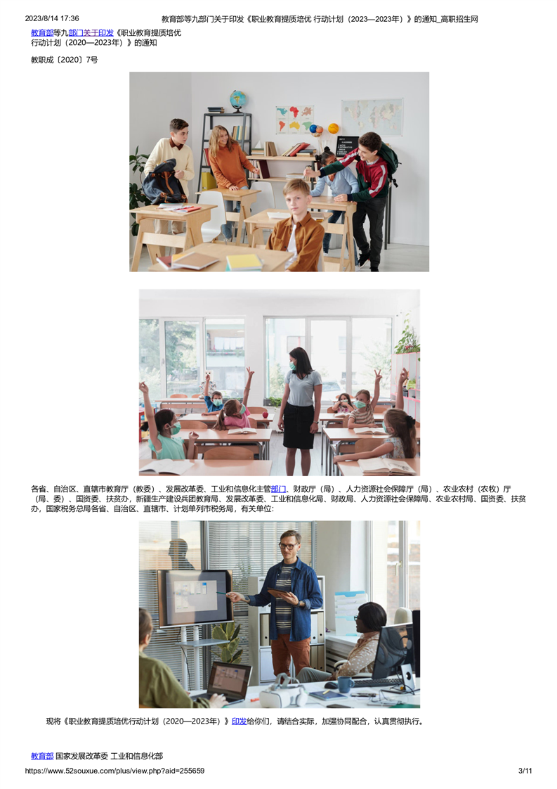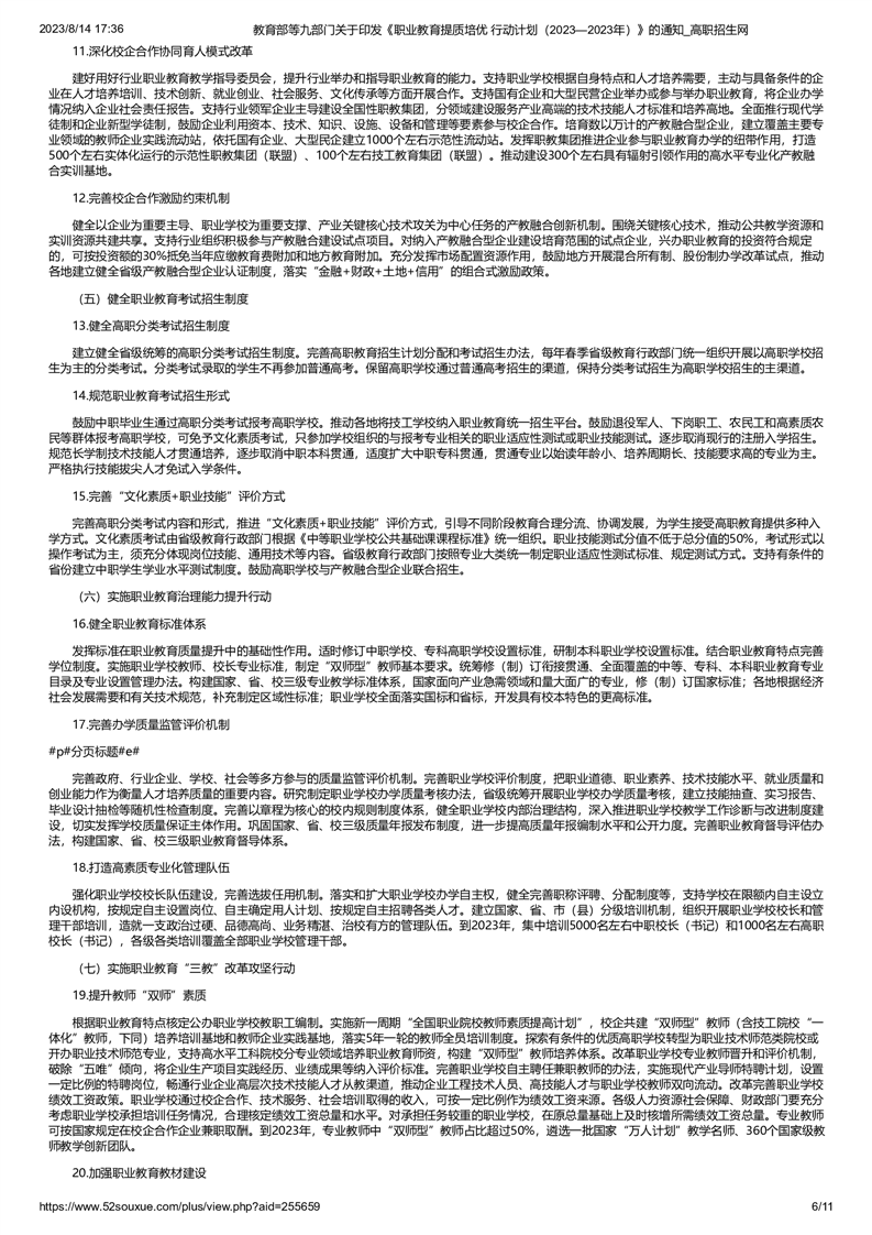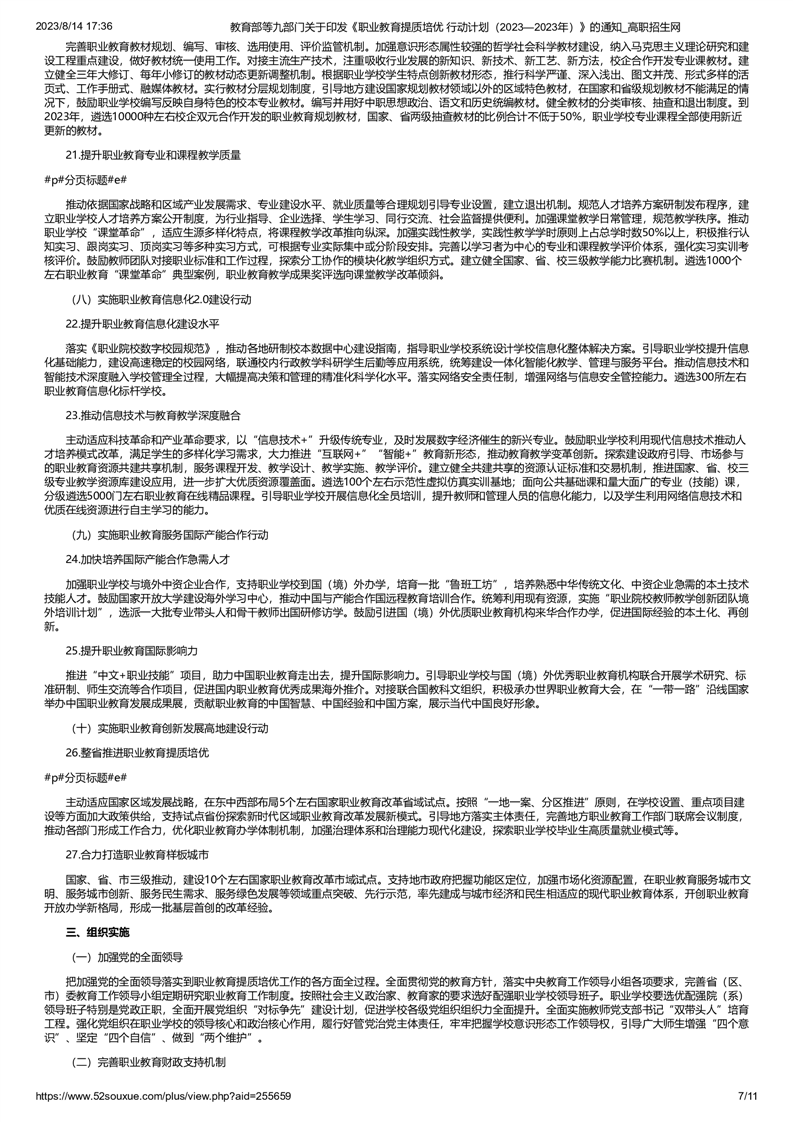 教育部等九部门关于印发《职业教育提质培优 行动计划(2023—2023年)》的通知