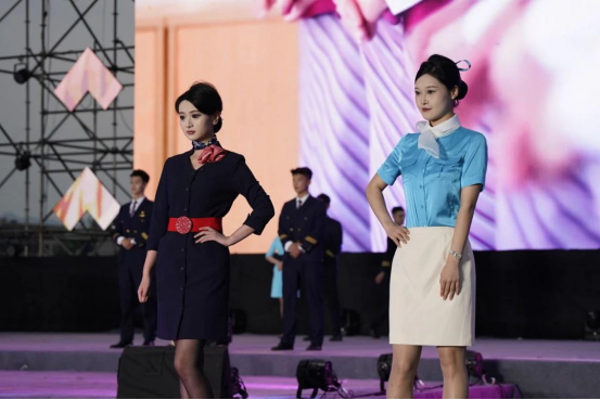 五四礼仪时装秀文艺展演时尚绵飞环节通过空乘、安检、机务、飞行、无人机、消防等专业职业时装秀节目,充分展示我院办学特色、优势品牌专业和现代高职学生精神风貌。将时尚华服、民航制服与青春劲舞巧妙编排,以独具特色的创意走秀、舞蹈展示,传递青春力量,尽显青春风采。