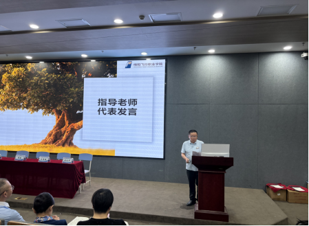 帮扶导师代表、代泽明副教授以“深耕教学守初心,传帮带教显担当”为题分享经验。他结合自身教学与教研经历,从课程设计、学情分析、技能实训三个维度,向在场教师传递实用教学方法:“在无人机专业教学中,要将行业案例融入课堂,让理论知识‘落地’;面对青年教师,我们不仅要传授‘怎么教’,更要引导‘为何教’,帮助他们树立教育情怀。”同时,他承诺全体导师将以“毫无保留、倾囊相授” 的态度履行职责,助力青年教师少走弯路、快速成长。