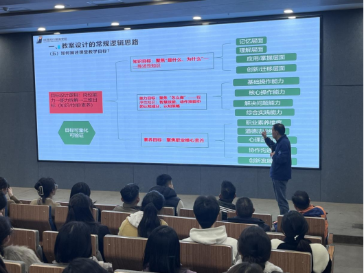 为深化职业教育“三教改革”,以科学教案设计推动岗位能力导向教学体系落地,提升教师教学设计与实践能力,11月16日,我校教师发展中心在北川校区学术报告厅206,面向校区全体专兼职教师开展教师教学能力专项培训。