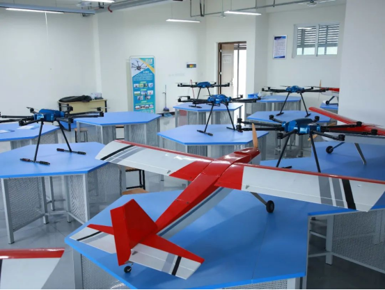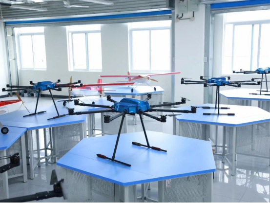 无人机装调检修实训室配备有航拍无人机、无人机组装设备、无人机检修设备、无人机调试系统,可满足无人飞机应用、无人机操作与维修、无人机安装调试、无人机航拍等课程教学及实训。