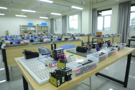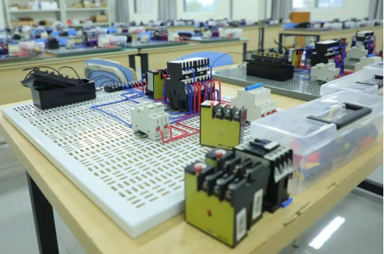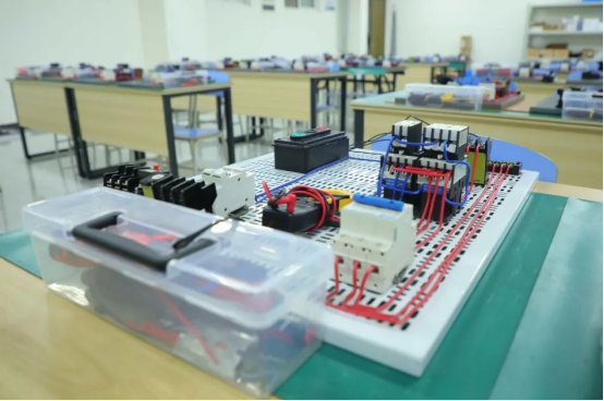 电子线路焊接实训室主要针对电子线路焊接技能进行培训,包括插件焊接、线束制作等多种焊接方法。电工标准线路施工实训室则是专门为电工专业学生提供实践操作技能训练的场所。该实训室按照国家电工标准线路进行设计和建设。