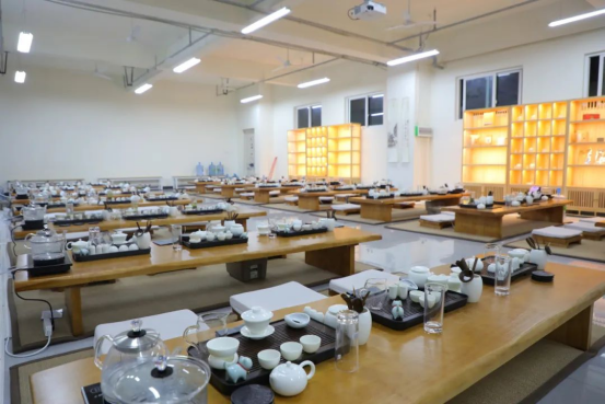茶艺实训室可以满足《茶艺知识》《茶艺欣赏》《茶艺职业标准》等课程教学实训并对外经营使用,是学生茶艺师职业技能鉴定、茶艺实际操作和职业资格证书培训的重要场所。实训室可开展的实训项目主要有茶艺服务、茶艺管理、茶艺设计、茶艺训练等。还可为实训教学、技能考核、对外培训、组织技能大赛等提供服务。