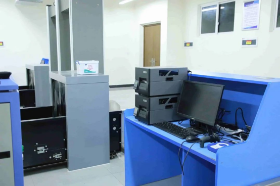 安全管理学院实训室内有PD140手持金属探测器10把,新中新身份证阅读器1台,意大利起亚(CEIA)进口 02PN20高性能通过式金属探测门(安检门)2台,威视CX6040BI型X射线检查1台,开包台1张。主要服务于我院民航安全技术管理专业的学生,以培养学生证件检查、开箱包检查、人身检查、X图像行李识别检查、模拟安检通道检查等操作为主要内容。