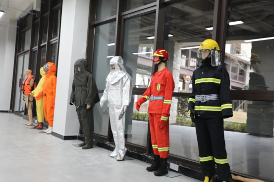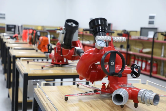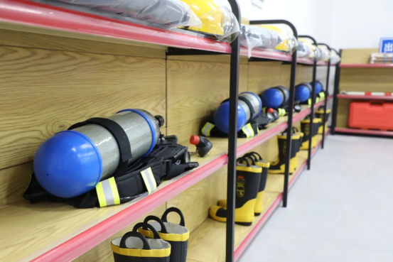 消防器材装备实训室是消防救援专业基础实训室之一,实训室总面积约为150平方米,能容纳40人同时上课,该实训室按照消防队伍正规化建设中的器材配置标准及要求进行。其中包含个人防护装备200余件套、灭火类装备55件套、抢险救援类装备45件套。